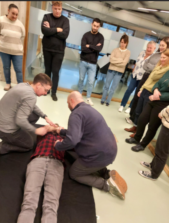 Door de initiaties per regio te organiseren, konden we meer medewerkers bereiken en hen vertrouwd maken met de basisprincipes van eerste hulp (gebruik AED, reanimatie, onwel worden…) en brandpreventie. Deze aanpak vergroot niet alleen de paraatheid binnen onze organisatie, maar versterkt ook de onderlinge samenwerking en het veiligheidsbewustzijn. Bovendien bood deze organisatie een praktische oplossing voor de uitdagingen op het vlak van hybride werken, waarbij de fysieke aanwezigheid op kantoor varieert.